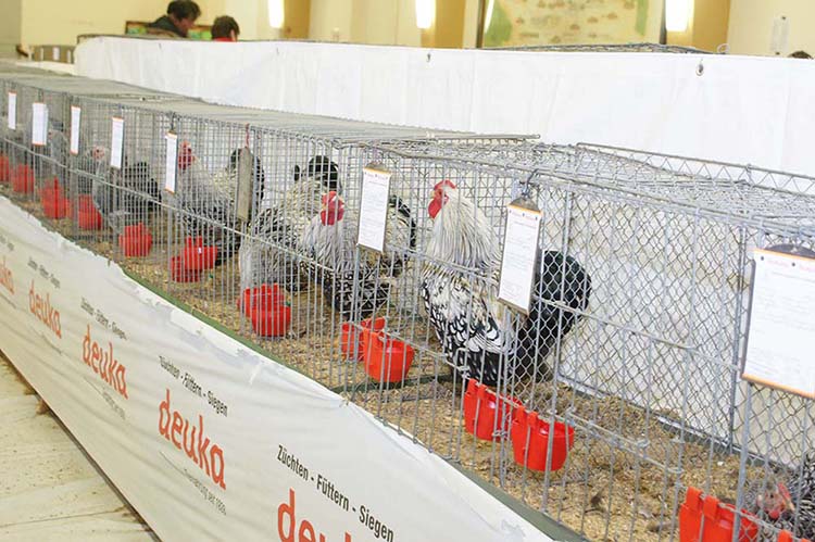 Amrocks, Australorps, Bielefelder, Brahma, Cochin, Dänische Tümmler, Federfüßige Zwerghühner, Fränkische Landgänse, Italiener, Japanische Legewachtel, Mährische Strasser, New Hampshire, Orpington, Strasser, Sundheimer, Warzenenten, Wyandotten, Zwerg-Plymoth Rocks, Zwerg-Welsumer, Zwerg-Wyandotten
